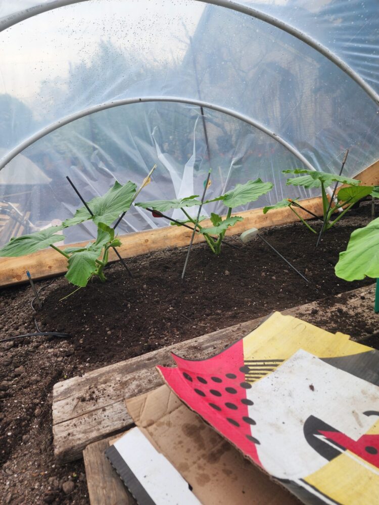 WITH 10 AND 10 SECONDARIES BEFORE THE PUMPKIN. THIS PLANT HAD 24 FEET OF MAIN FROM CROWN TO PUMPKIN. MASSIVE STRUCTURE. ALMOST RAN OUT OF PATCH !