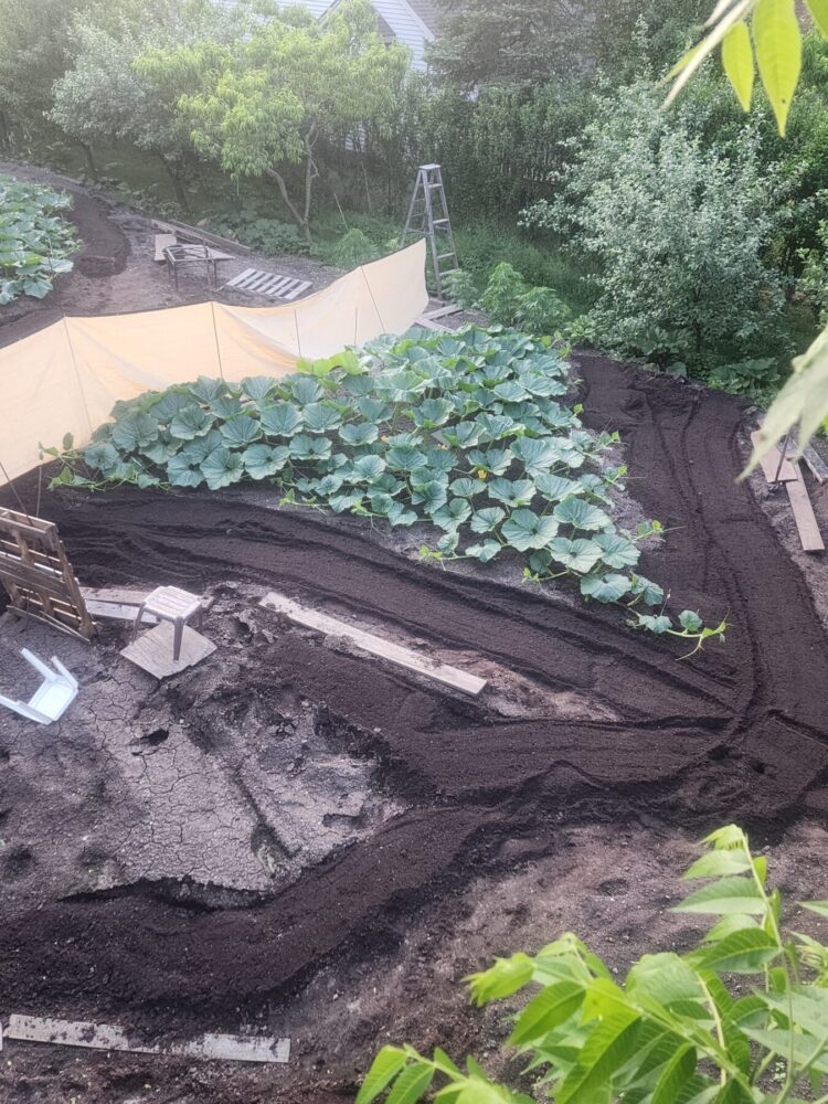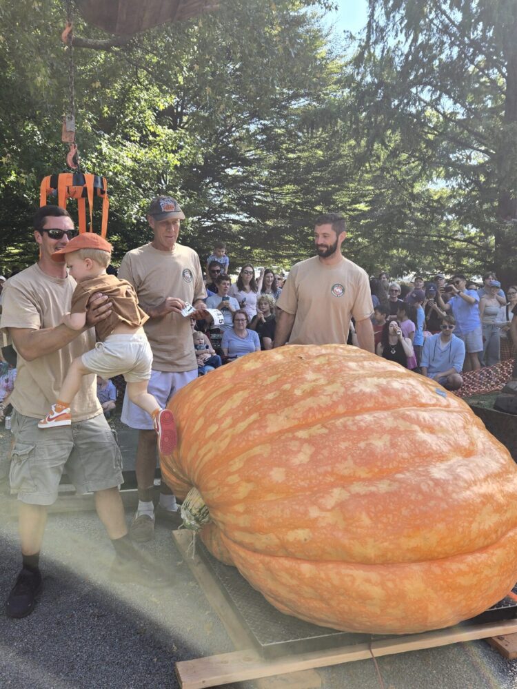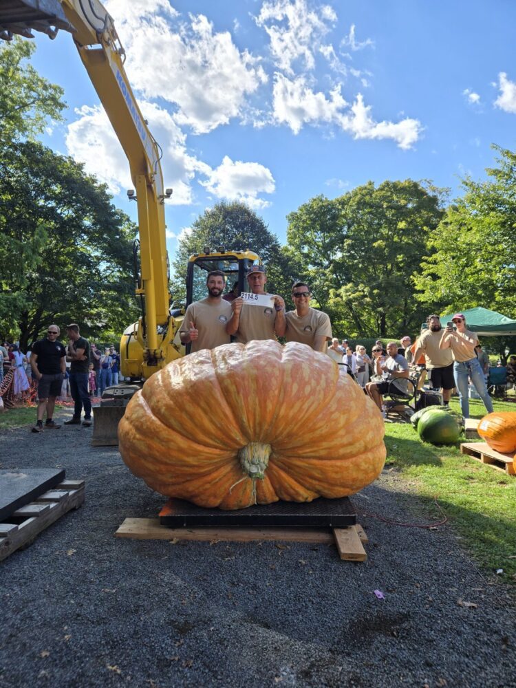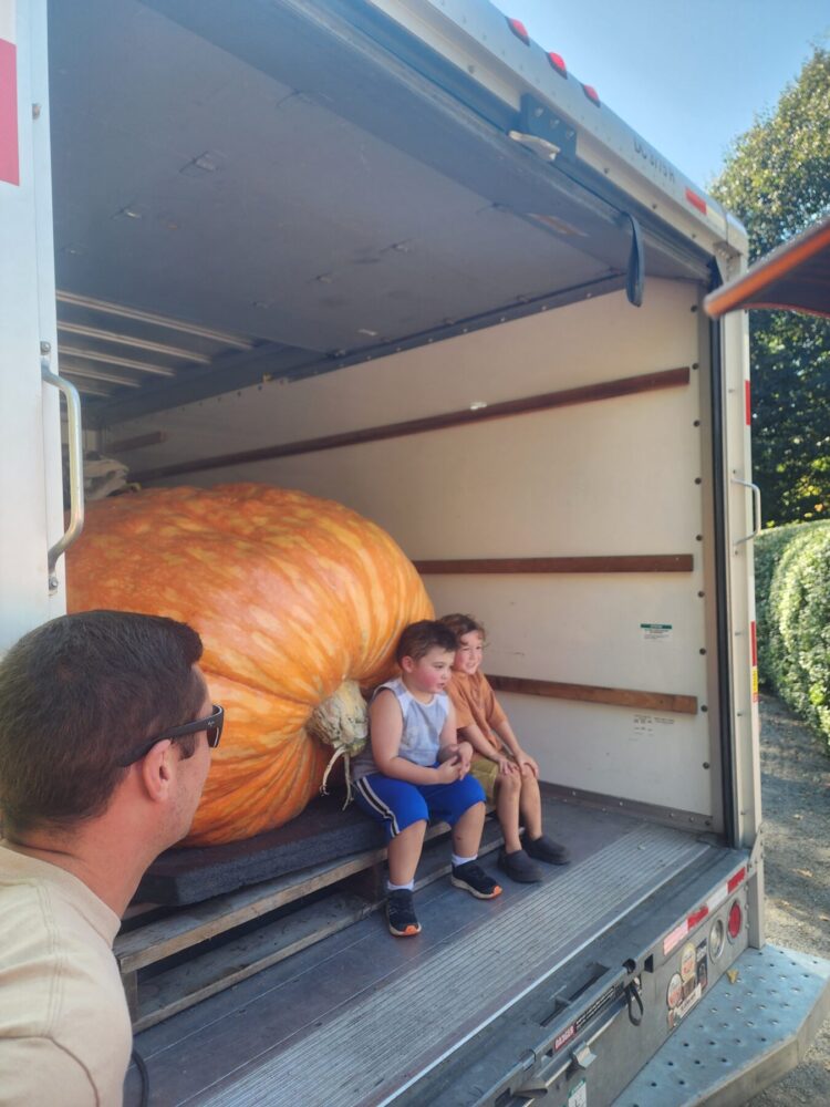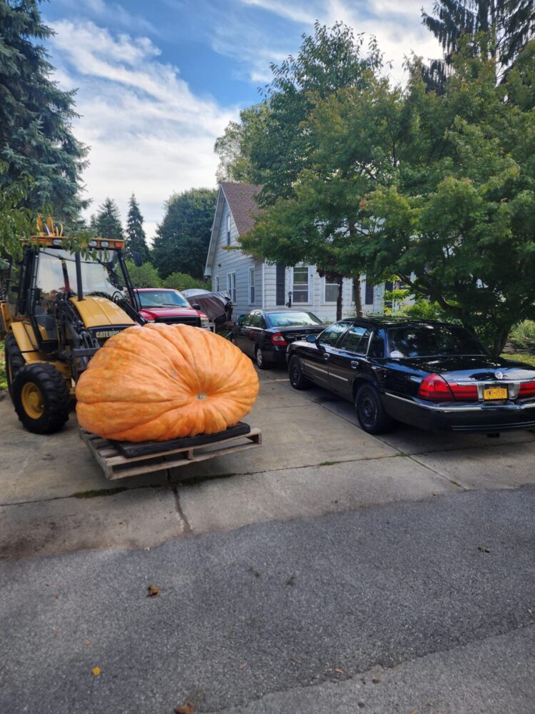 The 2114.5 Andrusz was grown from the 2342.5 andrusz we grew in 2024. This year we grew two 2342.5 Andrusz seeds. One ended up 2114.5, the other in our secondary patch made 1642 lbs as well. These 2342.5 seeds have massively aggressive plants and excellent shaped pumpkins. ORANGE! So far, the 2342.5 Andrusz plants have proven to be the most clone like and consistently similar plants we have seen. All showing very much aggression and good natural resistance to envinmental factors as well. Unfortunately, the 2114.5 Andrusz had a rabbit nest under the crown that went unseen for too long, leading to a hole in the main vine which further infected the main vine as the season progressed. Unfortunately this pumpkin slowed down and stopped as a result which was very disappointing as we had very high expectations for this one. This plant was an ABSOLUTE MONSTER.